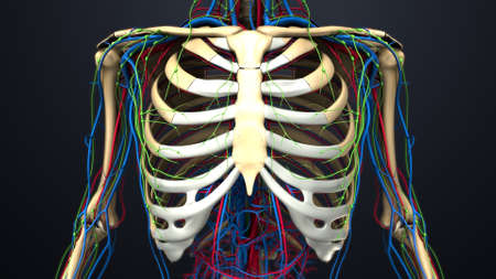 Human Skeletal Rib cage with Arteries, veins and lymph nodes