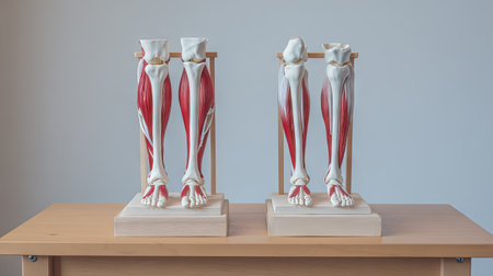 Detailed anatomical models of human legs feature muscles and bones, ideal for educational settings in biology and healthcare, facilitating effective learning.