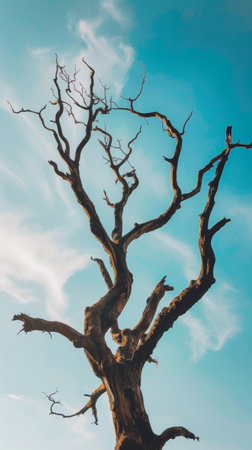 low angle view of beautiful tree top with textured bark and branches on a sunny day, Morocco