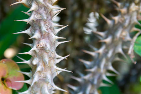 Close up thorn on Pachypodium Lamerei or Madagascar palm for texture and background.