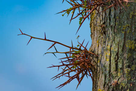 Tree Stem With Big Dangerous Prickles Gleditsia triacanthos