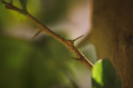 long and sharp thorns or prickles protecting a lemon tree in Spain
