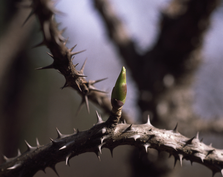 The texture is a wooden green tree, the plants are chorizion with sharp dangerous convex scary prickly thorns and thorns with bark. The background.
