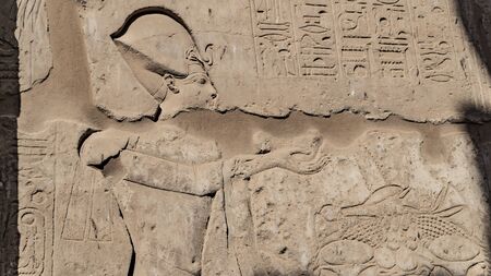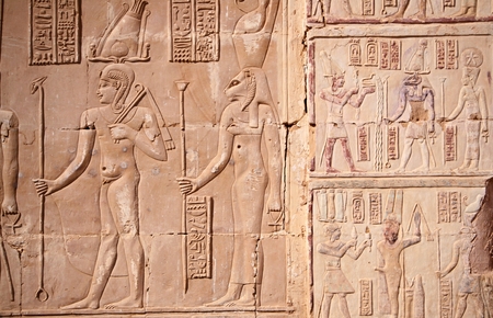 Ancient egypt carving color image on wall of temple in Egypt