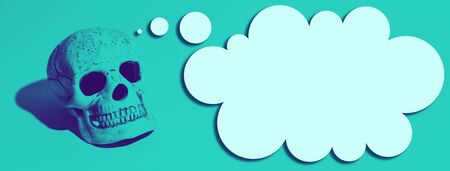 skull with a hard shadow on a mint background