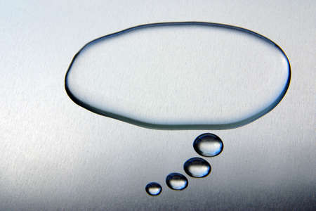 Comics thought bubble made out of water on a metallic surface
