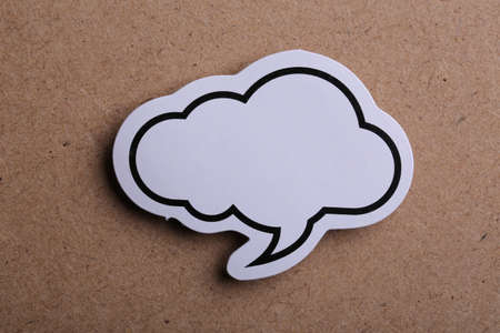 White blank speech bubble isolated on brown paper background with shadow.