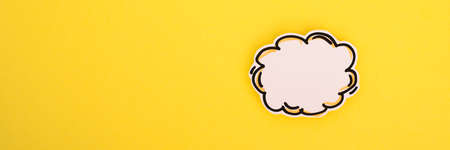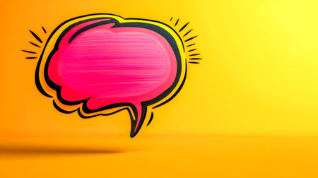 Pink comic style speech bubble floating on a yellow background