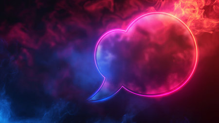 A vibrant neon speech bubble in a minimalist style, suspended in mid-air with a dark background. The glowing edges create a dynamic and eye-catching effect