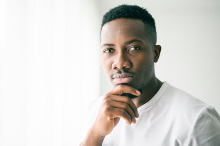 black man confident and casual at home. Portrait or headshot of a young men