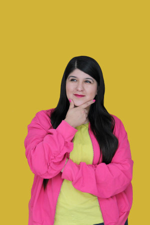 Young Latina woman with long straight hair is thoughtful to choose an option thinks the best choice