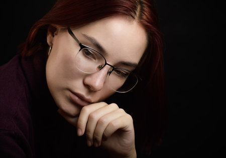 Contemplative Beauty Portrait Of A Brunette Woman With Moody Studio Lighting And Soft Glow