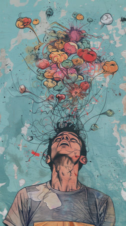 A person fighting through various mental health conditions expressing deep emotions. Concept Mental health struggles, Emotional expression, Inner turmoil, Vulnerability, Personal growth