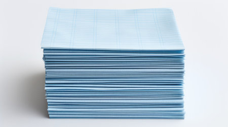 This image features a close-up view of neatly stacked blank white notebooks, showcasing a textured paper surface, ideal for creative projects and organization.