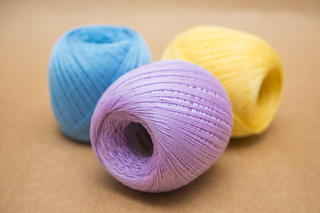 Colorful ball of wool lying on brown paper