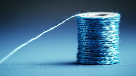 A close-up image of a vibrant blue thread on a spool, perfect for custom sewing and tailoring projects. Ideal for showcasing crafting activities and textile details.