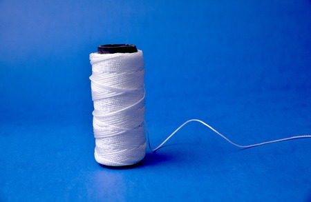 collection of various sewing threads on pastel background. each one is shot separately. knittinng tools.Natural cotton string roll isolated, copy space.Colored thread coils multi colored embroidery thread yarns.