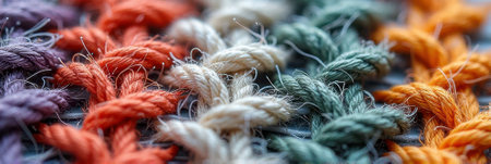 Vibrant multicolored knots in colorful textile close-up. That the image is generated using AI.