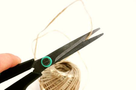 scissors cut golden thread on white