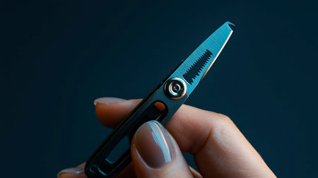 A close-up image of a compact precision tool held in a hand. The sleek design and sharp feature highlight its utility for everyday cutting tasks and creative projects.