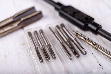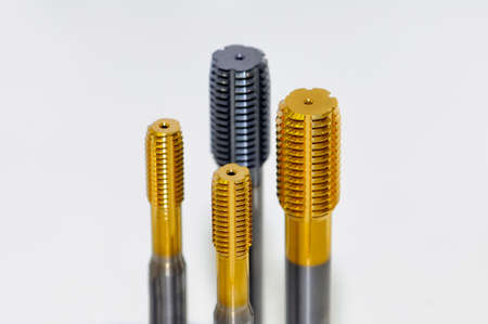 Screw taper taps cutting tool and broach of the different sizes. Small depth of sharpness