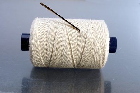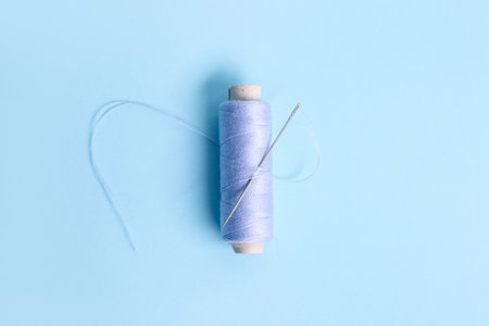 blue sewing thread and needle