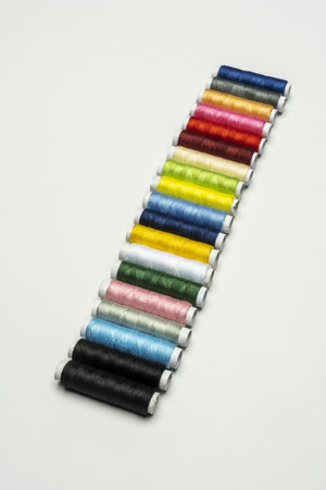 Set of colored sewing threads on a white background