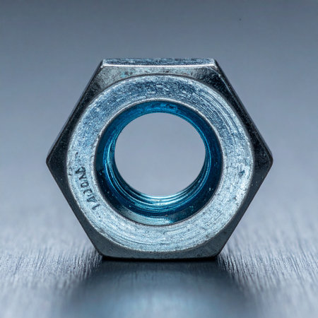 A macro photograph captures the intricate details of a single industrial lock nut.