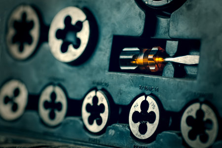detail of screw maker tools die hand threads