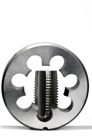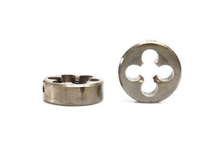 Thread cutting die tool, a photo close up. Industrial abstract background. Shallow depth of field.