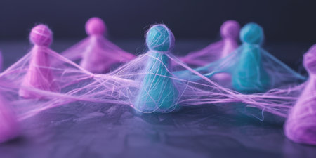 String forms a visual lifeline linking people icons, symbolizing connections and relationships among individuals in a creative and artistic manner.