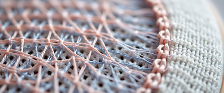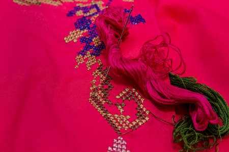 Handcrafted embroidery patterns. Every seam and stitch of the handmade embroidery is visible in this detailed macro shot.