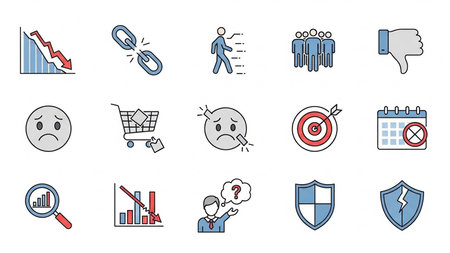 Question showing business failure and negative icons including broken chain sad face and thumbs down keywords: business, failure, negative, icons,...