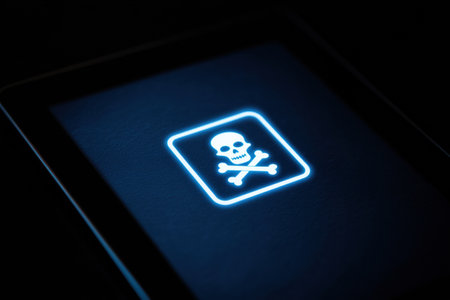 Glowing poison prevention app icon on a tablet screen highlights the importance of safety awareness regarding toxic substances in a minimalistic setting.