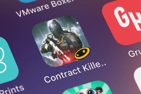 London, United Kingdom - September 30, 2018: Close-up shot of the Contract Killer: Sniper mobile app from Glu Games Inc.