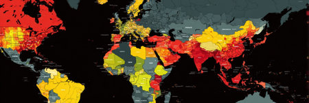World map illustrates regions affected by viral spread, marking significant outbreaks and highlighting zones of concern globally.