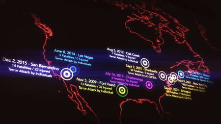 Governmental security operations center with an USA flag. Focus on cyber threat analysis, secure operations and digital forensics to protect information and ensure cyber safety. Camera B.