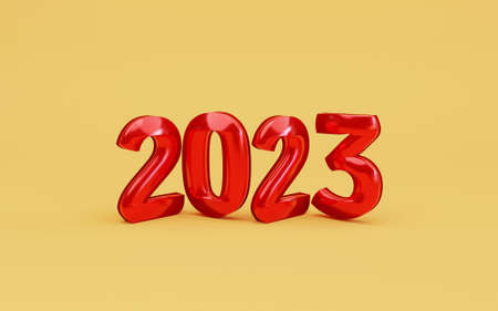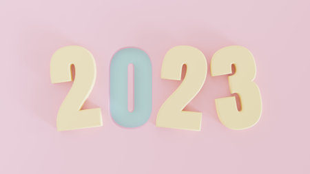 3d rendering, 3d illustration 2023 New Year background in pastel color tone