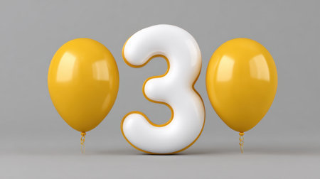 Bright and colorful decoration featuring a glossy number three surrounded by cheerful yellow balloons, perfect for birthday celebrations.