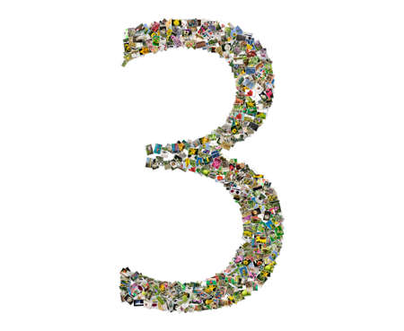Organized human mass creates huge number three symbol viewed from above. Depicts census demographic data or countdown.