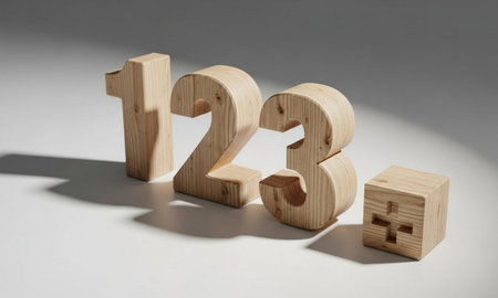 A vibrant display of colorful wooden numbers arranged creatively on a mint green backdrop, ideal for educational settings or playful children's environments.