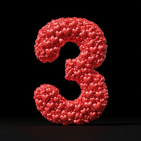 Red Heart Shaped Number Three Romantic Design Valentines Day 3 3d love cute card font sweet shiny