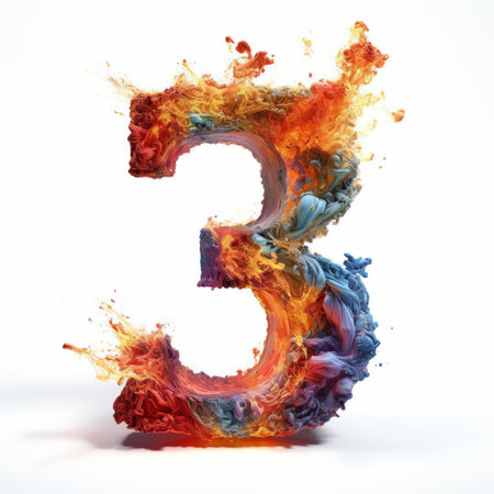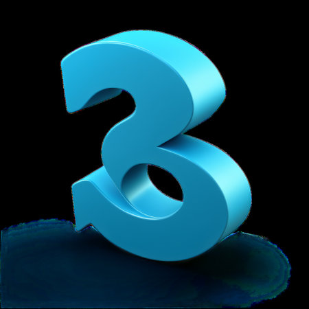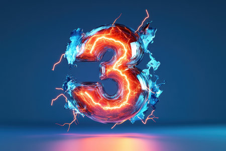 a vibrant and high-energy image captured on flickr featuring a blue, floating number 3. the illusion of three-dimensionality is created through smooth curves and layered gestures, resulting in streamlined forms. the hyper-realistic details add to the overall visual impact of the photo. ai generated
