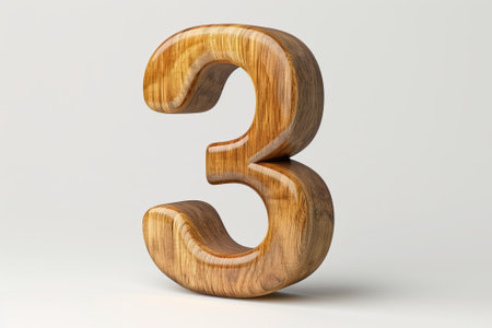 Cute wooden number 3 or three as wooden shape, white background, 3D illusion, storybook style.