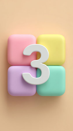 A vibrant image featuring pastel-colored cubes and a white number three, perfect for educational or design projects.