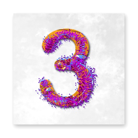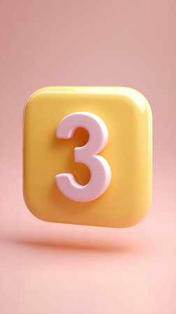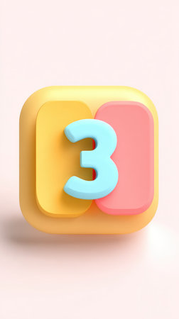 A vibrant, 3D-rendered icon featuring the number three in a playful design.