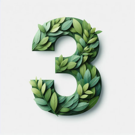 The number 3 is made out of leaves. It is a creative and unique way to represent the number
