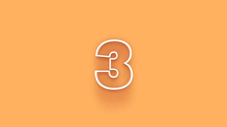 Number 3 in light orange color with shadow. 3d rendering, 3d illustration.
