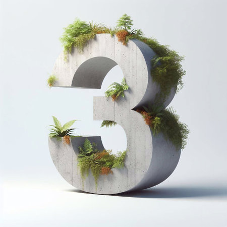 Digit 3 shape 3D Lettering That Blends Concrete With Nature. AI generated illustration