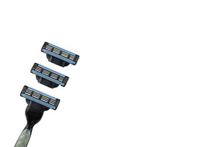 Men shaving machine and interchangeable blades on a white